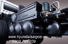 Xe Hyundai HD1000 được trang bị hệ thống treo hình parabol phía truớc tăng độ êm cho người lái xe , và hệ thống treo phía sau vô cùng cứng cáp giúp cho xe chịu được tải trọng vô cùng lớn, vượt trội hơn hẳn so với các dòng xe các cùng phân khúc.Ngoài ra Xe đầu kéo Hyundai HD1000 còn được trang bị hệ thống phanh tang trống được dẫn động bằng khí nén 2 dòng , giúp tăng cường độ bám đường, chống trơn, chống truợt, qua đó mang lại sự an toàn và yên tâm cho người lái xe