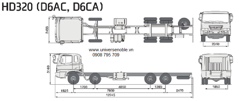 THÔNG SỐ KỸ THUẬT XE HYUNDAI HD320 MÁY ĐIỆN D6CA 380ps