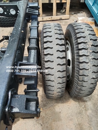 Xe tải Hyundai Mighty EX8sử dụng mâm nhôm đúc, lốp xe loại không ruột thông số 8.25R-16.